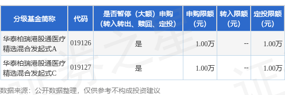 本站音讯,9月26日华泰柏瑞基金处理有限公司发布《华泰柏瑞港股通医疗精选夹杂型发起式证券投资基金抵制大额申购(含依期定额投资)业务的公告》。公告中教唆,为保证本基金的踏实运作,保护基金份额抓有东谈主利益,以及凭证《华泰柏瑞港股通医疗精选夹杂型发起式证券投资基金基金契约》的筹办轨则,自2025年9月29日起华泰柏瑞港股通医疗精选夹杂型发起式证券投资基金抵制大额申购(含依期定额投资)业务,申购上限金额为1.0万元,下属分级基金改变明细如下: