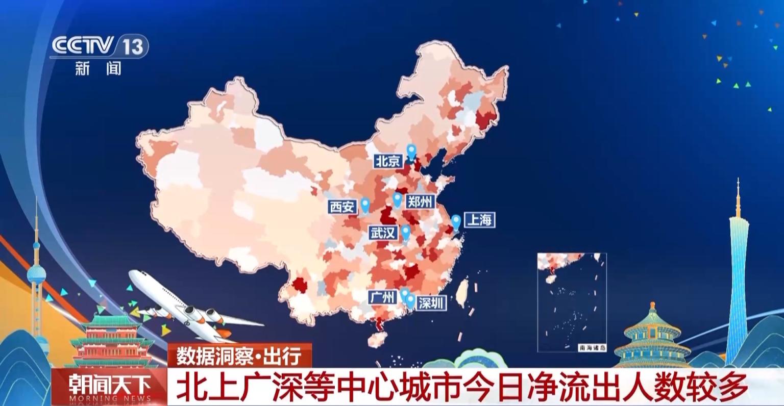 这是一张凭证12306火车票预售数据绘图的热力争,红色越深代表在今天乘火车净流入到这个城市的东谈主越多,蓝色越深则默示净流出这里的东谈主越多。北上广深、武汉、郑州、西安等中心城市是净流出东谈主数较多的城市。