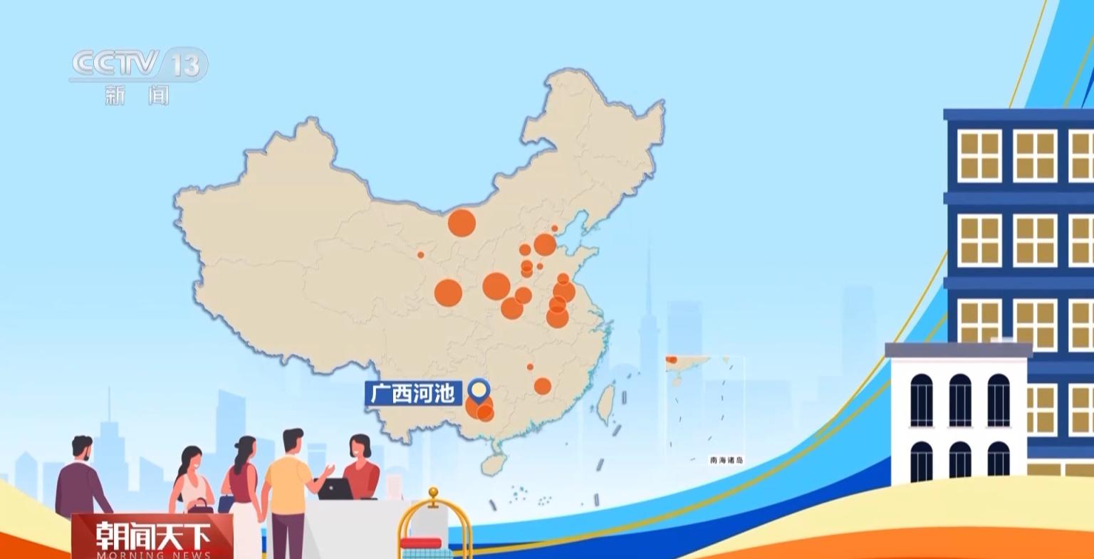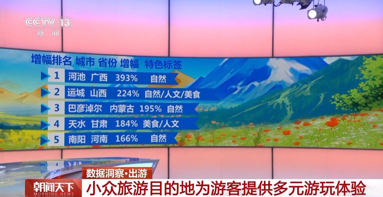 在这张热力争上,标注的是增幅前20的小众操办地城市,圆圈大小默示增幅的上下,名挨次一的广西河池的酒店和票务预订同比增长近四倍,而漫步在10个不同省份的这20个城市,同比增幅皆在一倍以上。
