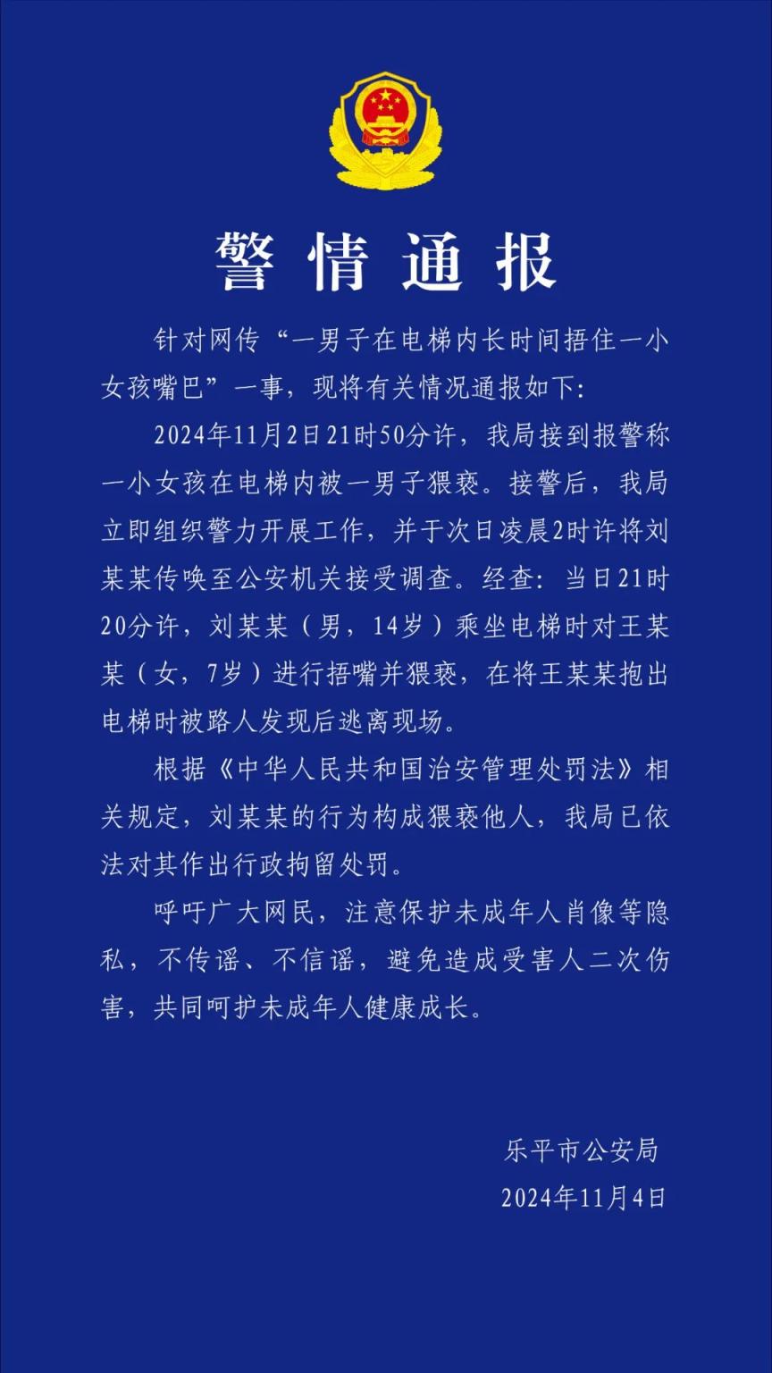 开云kaiyun官方网站14岁男孩电梯内捂嘴猥亵7岁女童,江西乐平警方通报-滚球波胆